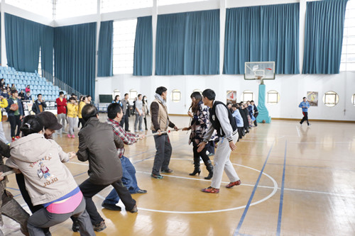 | 为丰富教职工文化生活,增强凝聚力,激发教职工参与体育活动的积极性,体育-社科-国交院分工会与学前学院分工会于2014年11月26日下午在体育馆举行了教职工拔河比赛,来自两个工会的40余名教职工参加了比赛。 此次比赛在南京特教学院学生“3v3”篮球比赛决赛开始前进行,比赛还没开始,同学们就不停为自己支持的队呐喊加油,现场气氛紧张而热烈,比赛哨声一响,双方队员双手紧握长绳,齐心协力,显示出良好的团队协作精神,比赛在热烈地欢呼声中结束。 此次拔河比赛活动充分展示了开云教职工团队合作的凝聚力和团结向上、奋勇进取的精神风貌,为创建和谐校园增添了一抹亮色。 |