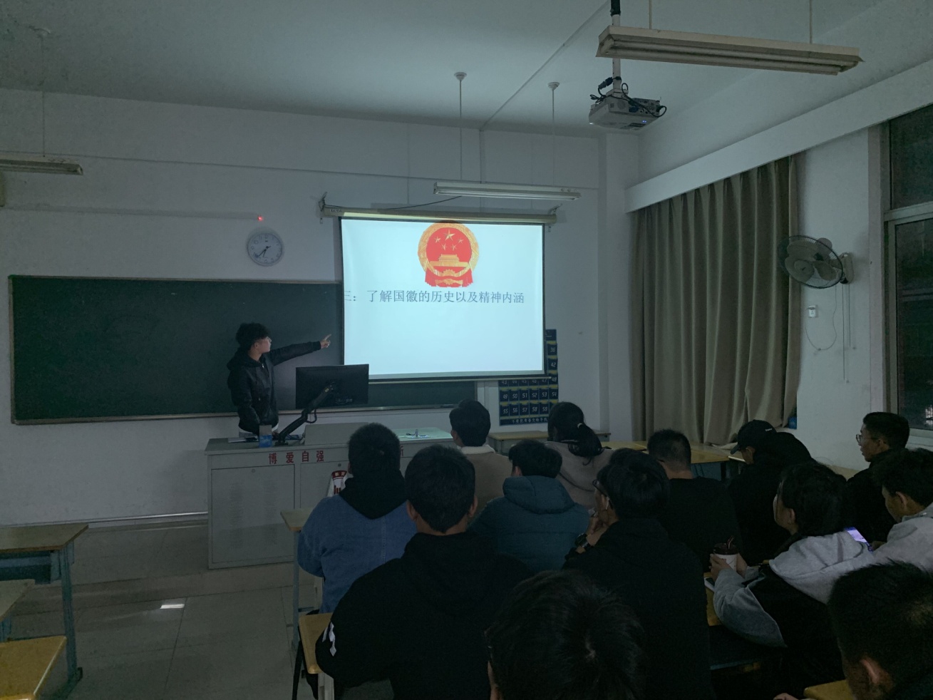 11月19日晚,开云kaiyun体育1901班博雅楼召开了以《我与祖国共进退》为主题的团日活动。团支部书记包涵硕同学通过短片、视频向大家展示了中华人民共和国国旗、国徽的图案以及他们背后的故事。大家一起聆听了雄壮的中华人民共和国国歌,歌声把我们带到了那个艰苦卓绝、硝烟弥漫的革命年代。接着,大家积极参与了主题讨论,“我为祖国做什么?”“青年人的使命和担当是什么?”