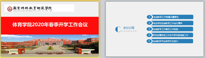 首先,金院长传达了学校在线教学工作会议精神,在做好疫情防控的同时,明确开云kaiyun体育目前的工作重点,即“停课不停教,停课不停学”,以及开展在线教学的必要性,确保学生学业不会因疫情而耽误。同时,号召大家统一思想,提高认识,确保在线课程教学质量。徐冬晨副院长对学校在线课程教学指导意见做了详细的解读,强调开云kaiyun体育课程以引导学生在家锻炼身体为宗旨,以完成教学任务为目标。同时给全体老师就如何利用腾讯会议、腾讯课堂开展在线教学工作进行了辅导。公体教研室主任仝伟老师和体育系主任徐五所老师分别对公体课和专业课授课内容和授课方式提出了具体的要求,解答了老师们对在线教学存在的困惑。