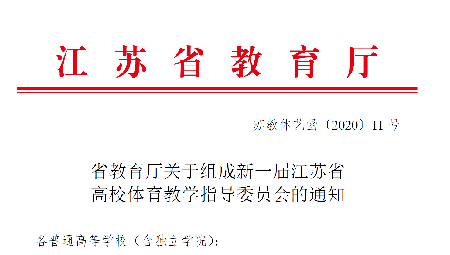 近日,在江苏省教育厅公布的《省教育厅关于组成新一届江苏省高校体育教学指导委员会的通知》(苏教体艺函〔2020〕11 号)文件中,开云kaiyun体育副院长(主持工作)金梅教授当选新一届江苏省高校体育教学指导委员会委员。
