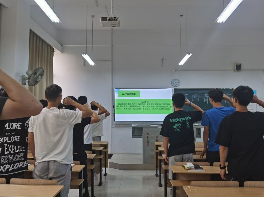 今年是五四青年节101周年,为了大力弘扬五四爱国精神,紧接着,团支书包涵硕采用理论宣讲与视频赏析的方式,阐述了“五四青年节的由来”,“中国共青团”誓词“五四精神与现代内涵”等内容并由江子健同学带领大家重温入团誓词