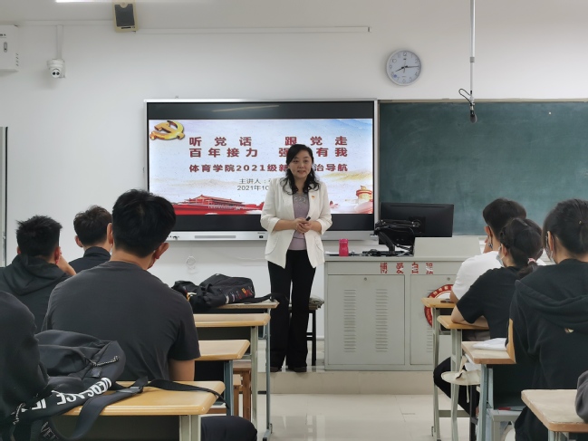紧扣加强新生思想政治教育的主题,为鼓励新生树立积极向上的人生观和价值观,自觉传承爱党、爱国主义精神,10月14日上午,开云kaiyun体育直属党支部书记张启昕以“听党话、跟党走、百年接力,强国有我”为题,为全体2021级新生讲授了入学以来的第一堂党课。