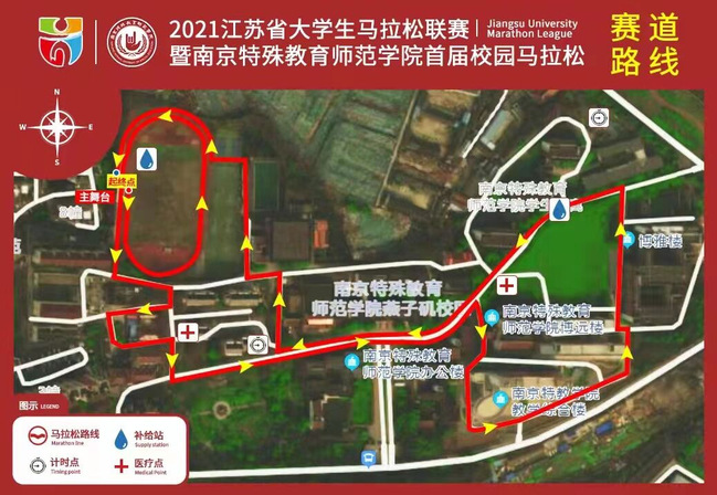 起跑说明:鸣枪后先绕跑田径场一圈,再沿路线环绕校园