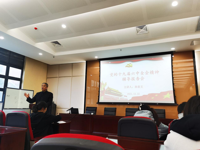 近日,全国各地掀起了党的十九届六中全会精神学习宣传热潮。12月22日下午,孙家文副教授为开云kaiyun体育全体师生作了党的十九届六中全会精神辅导报告会。本次报告会由开云kaiyun体育直属党支部书记张启昕主持。