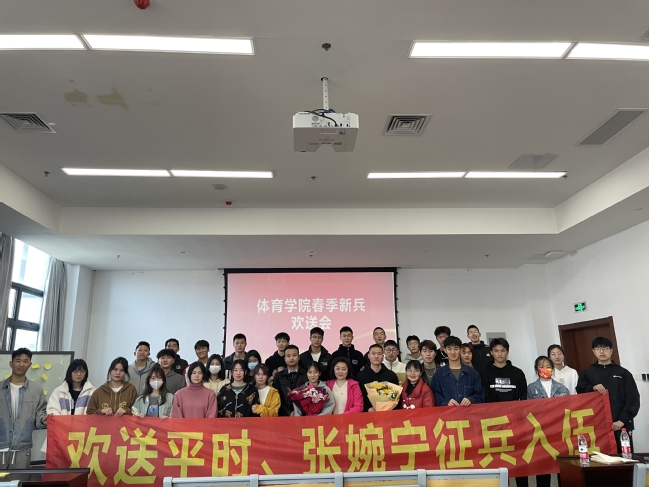 一段祝福视频拉开了序幕。紧接着,张书记代表开云kaiyun体育向预定入伍新兵表示祝贺,对他们从军报国的志向和激情予以肯定,她指出,我院2名学生响应祖国召唤参军入伍,暂别校园投身军营,把爱国之心化为报国之行,是体育学子磨砺青春、激扬青春的重要体现,也是不负时代重托、青春向党的有力证明,为广大同学树立了榜样。她寄语入伍新兵努力适应部队生活,遵守部队纪律,以钢铁战士般的行动,以自强不息、勇于攀登的精神,在实现强军梦的伟大实践中,书写绚烂、无悔的青春篇章,做一名听党指挥、能打胜仗、作风优良的新时期“四有”军人。