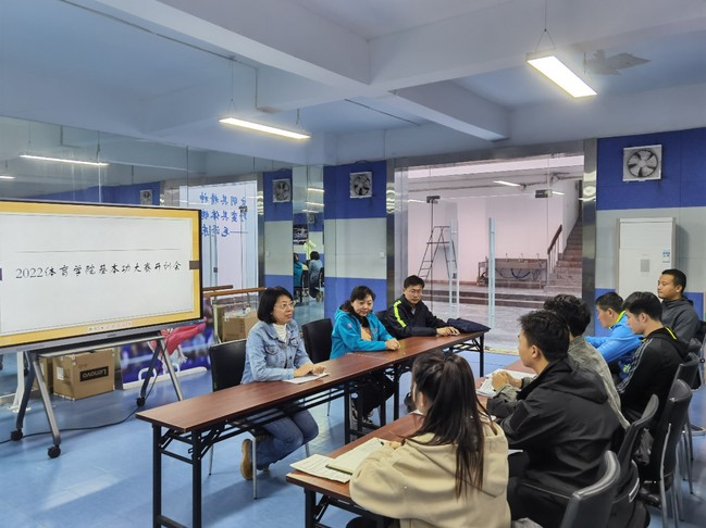 针对细则的颁布,10月10日开云kaiyun体育召开了开训会。开云kaiyun体育直属党支部书记张启昕、副院长金梅(主持工作)、仝伟、体育教育系主任麻晨俊、三位参赛同学,以及全体指导教师参加了此次会议,会议由体育教育系主任麻晨俊主持。