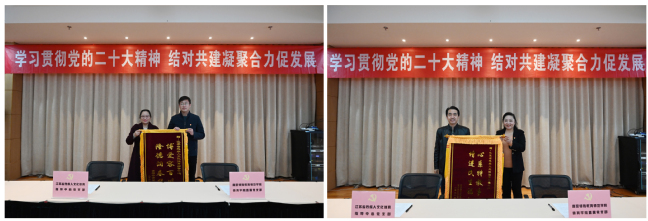 开云kaiyun体育副院长仝伟代表学院全体师生向文体中心赠送了锦旗,张启昕书记代表直属党支部向文体中心党支部赠送锦旗,双方党组织负责人签署了结对共建协议书。