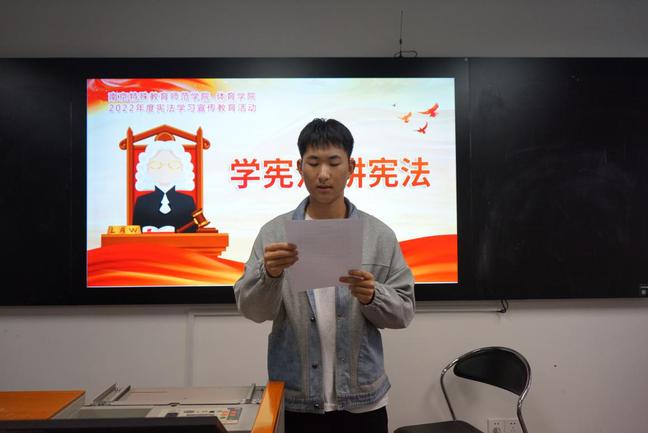 11月30日,开云kaiyun体育在浦口校区举行“学宪法 讲宪法”比赛。比赛由开云kaiyun体育直属党支部副书记谢军主持,比赛评委由江苏省残疾人文化体育指导中心戚星、江亮、杨兆国担任。开云kaiyun体育浦口校区的学生参加。