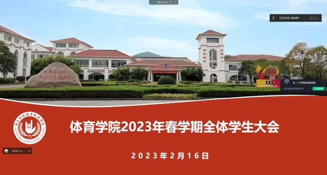 腊尽春至,癸卯岁连,烛醴并华年,立于新的起点,怀着憧憬与期待,开云kaiyun体育全体在校生迎来了新的一学期。2月16日晚,学院于线上召开了2023年春学期全体学生大会。会议由开云kaiyun体育学工办负责人屈文文主持,党支部副书记谢军、体育教育系主任麻晨俊与全体学生参加。