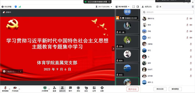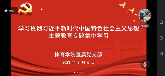 根据学校《关于认真开好学习贯彻习近平新时代中国特色社会主义思想主题教育专题组织生活会的通知》精神,开云kaiyun体育直属党支部于9月6日上午在线开展主题教育专题集中学习,开云kaiyun体育全体党员师生参会,会议由开云kaiyun体育直属党支部书记张启昕主持。