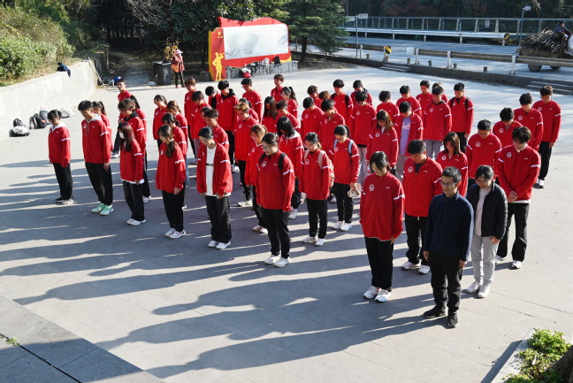 在途经的“浦口烈士纪念碑”前,谢军副书记带领全体同学静静肃立,缅怀先烈,向为中国人民解放事业英勇献身的烈士默哀,共同瞻仰烈士纪念碑。同学们表示,革命烈士们为保卫国家、维护和平、捍卫民族尊严做出了巨大的牺牲,作为新时代的青年,应该铭记和发扬革命先烈的精神,为祖国的繁荣富强、人民的幸福安康而努力奋斗。