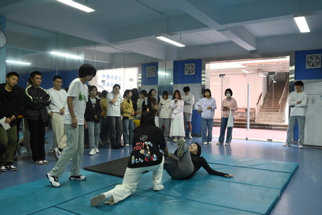 在“防身术体验"环节,南京警察学院的学生热心传授我院学生会成员防身术知识,帮助同学们掌握一些基本的自我保护技能,同时提高安全意识和应对突发情况的能力。这种技能的传授不仅有助于个人安全,也能让同学们在紧急情况下更好地保护自己和他人。
