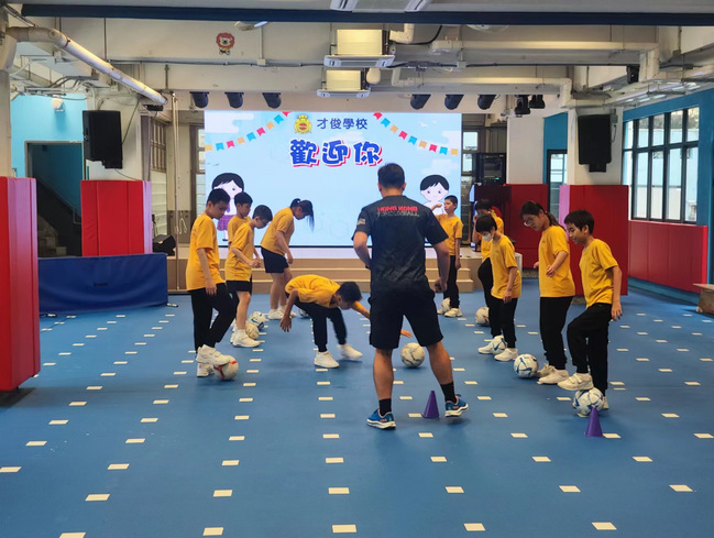 代表团一行还走进了香港才俊特殊教育学校,观摩了一堂足球课,参观了学校的环境设施,了解了香港特殊教育学校的发展状况,并与才俊特殊教育学校梁飞农校长及体育负责教师就特殊孩子的个性化教学和辅导开展交流。