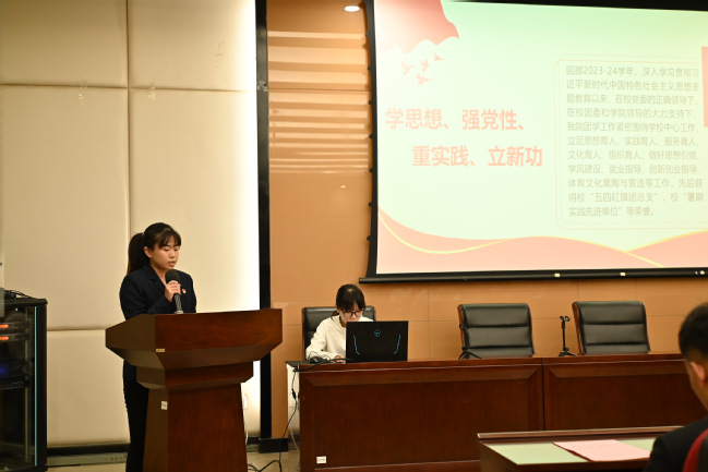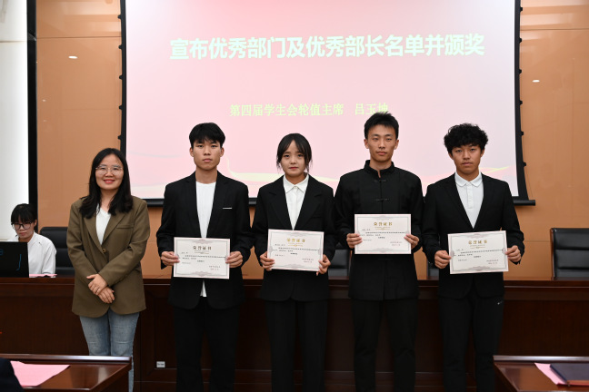 开云kaiyun体育团总支书记屈文文为第四届主席团成员与各学生会部门负责人颁发聘书、纪念品,同时为上一年度优秀部门及优秀部长颁奖。