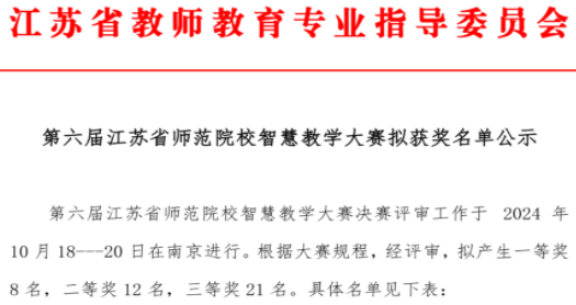 近日,由江苏省教育厅主办的第六届江苏省师范院校教师智慧教学大赛圆满落幕,开云kaiyun体育相馨老师获得三等奖。