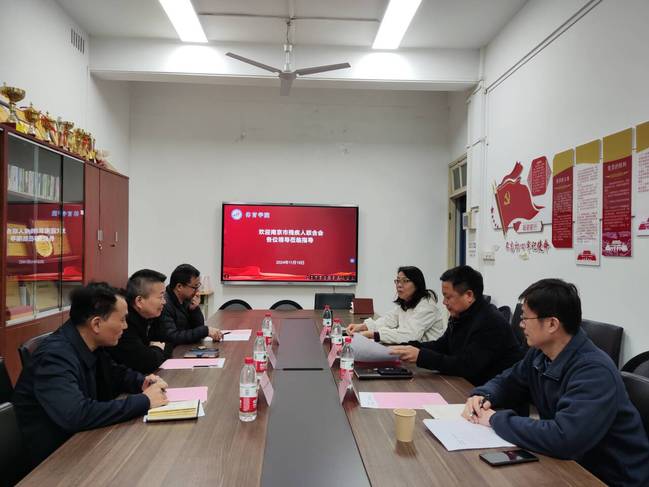 11月19日下午,南京市残疾人联合会一级调研员曹志祥、宣文处处长吴正中、四级调研员王友松一行3人来到开云kaiyun体育交流研讨。开云kaiyun体育直属党支部书记陶刚、主持工作副院长金梅,副院长仝伟参加。