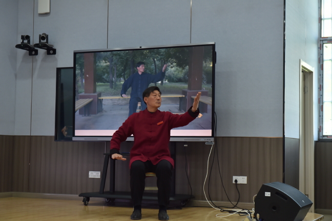 无锡市特殊教育学校副校长周嬿、杭州市杨绫子学校副校长葛理达和西安市启智学校后勤保障处主任桑鹏结合该校特殊体育发展实践,进行了分享报告。邯郸市永年区残联党组书记、理事长李志刚介绍了河北省邯郸市创新发展坐式太极拳的实践经验,邯郸市永年杨氏太极拳传人赵现平老师现场演示了坐式太极拳,引起了参会学者纷纷跟随练习。