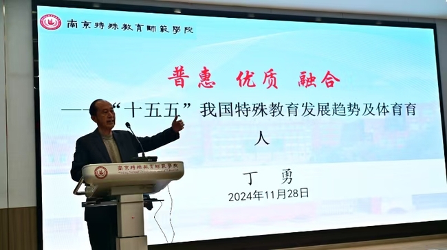 论坛围绕新时代特殊体育教育发展展开研讨和交流。丁勇研究员做了题为《普惠、融合、优质——“十五五”我国特殊教育发展的重点及趋势》的主旨报告,他立足于新时代特殊教育发展的重要指导思想,即“健全特殊教育保障机制,强化特殊教育普惠发展”,指出依然要把提高特殊教育普及程度、推进教育公平作为“十五五”我国特殊教育发展的重要任务,积极加以落实。其中优质融合是我国特殊教育发展方向和目标任务。他最后强调在推进特殊教育发展过程中,以教育家精神为指引加强教师队伍建设尤显重要。