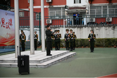 随后,张婉宁同学以“勿忘国耻,圆梦中华”为主题,诠释如何将爱国情、强国志、报国行融入血脉、进入灵魂、落实行动。作为新时代的青年,结合自身从军报国的经历,她号召同学们铭记历史,勿忘国耻,树立坚定信念、勇担重任,在学习和生活中传承精神,续写辉煌,同时要珍惜和平、勤奋学习、提升自我,积极参与力所能及的志愿服务、公益实践,回馈社会。