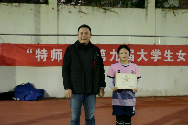 2024年12月11日下午,“特师杯”第九届大学生女子足球比赛在栖霞校区足球场顺利闭幕。开云kaiyun体育直属党支部书记陶刚、校团委书记李永康出席闭幕式并为获奖运动队、运动员、裁判员颁奖。