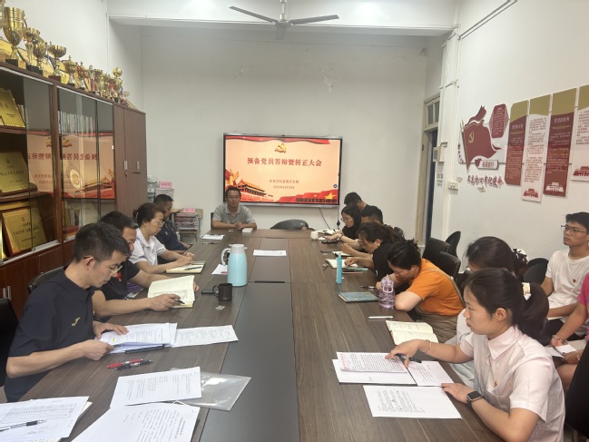 答辩通过后,召开党员转正大会,讨论研究李仪琳同志预备期满转正事宜。李仪琳同志向组织汇报预备期一年来的个人表现,入党介绍人对李仪琳同志的工作情况发表了看法。通过无记名投票,与会正式党员一致同意李仪琳按期转正。谢军副书记宣读了支部决议。李仪琳同志向大会作了表态发言。