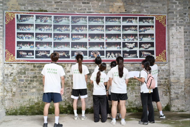 傍晚时分,团队前往永新县非遗馆。在这里,泛黄的史料和一件件实物展品,让队员们进一步了解了“盾牌舞”的前世今生。他们仔细观摩了实物盾牌、历史影像以及图文资料,对这项国家级非遗的保护现状和未来发展有了更为深刻的认识。
