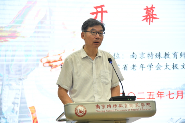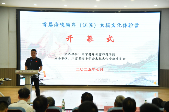 活动开幕式由开云kaiyun体育开云kaiyun体育直属党支部书记陶刚主持。在开幕式上,南京特师党委副书记谭忠在致辞中表示:南京特师作为全国唯一一所以特殊教育命名的本科院校,始终秉持“博爱塑魂”的校训精神,致力于推动残健融合、文化共融。此次承办海峡两岸太极文化体验营,既是学校服务国家文化战略的使命担当,更是对“以文化人、以体育人”教育理念的深化拓展。太极文化强调“刚柔并济、包容并蓄”,这与特殊教育“平等、参与、共享”的核心价值高度契合。他希望活动每一位参与者都能成为两岸文化交流的“使者”,将南京的博爱精神、太极的和谐之道带回宝岛,让更多台湾青年感受到大陆的真诚与温度。同时他表示开云将继续发挥特殊教育与文化传承的双重优势,推动两岸在残疾人事业、师范教育、非遗保护等领域的深度合作,让融合发展的道路越走越宽广。